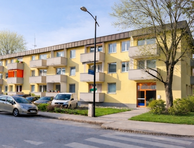 - Attractive, compact 2-room apartment offering 45.15 m² of living space plus a 5.03 m² south-facing balcony, situated on the third and top floor, with use of a basement compartment on the ground floor. Ample communal parking is available around the well-maintained residential building.