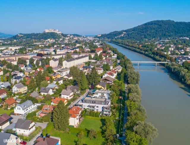 - A tranquil and bright location close to the Salzach, with excellent local infrastructure within walking distance: bus stop, supermarket, SCA, fitness centre, bank, doctors, etc. Ideal for cycling and walking along the nearby Salzach riverside, with the city centre quickly accessible.