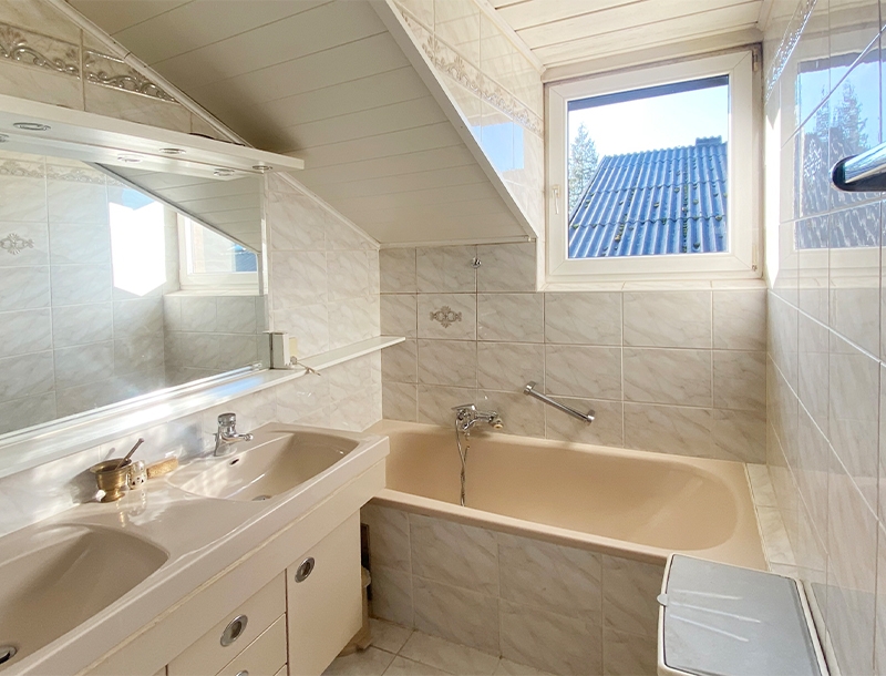 - Home sweet home! The heart of this well-proportioned apartment is a generous living room with a charming dormer window and seamlessly integrated kitchen. The large, sunny balcony with a stunning view of the Saalach is ideal for relaxation al fresco. One of the two spacious and tranquil bedrooms opens out onto the balcony. The second bedroom is particularly cosy due to the slanted roof. The bright bathroom includes a bathtub, double basin and WC.