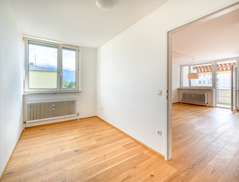 - Perfect for shared living! This thoughtfully designed apartment features rooms that are all accessible from the hallway, which provides ample space for a large wardrobe. The bright living room can be effortlessly divided into a dining area and a cosy lounge, leading to a delightful roofed balcony with lovely views of the surrounding mountains. The separate kitchen is equipped with an oven, ceramic hob, fridge-freezer, dishwasher, microwave, and a washing machine connection. The bedroom opens onto the second roofed balcony, while the additional room can be tailored as a child’s room, guest bedroom, or study.