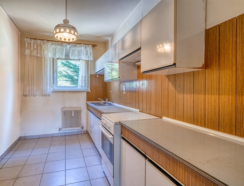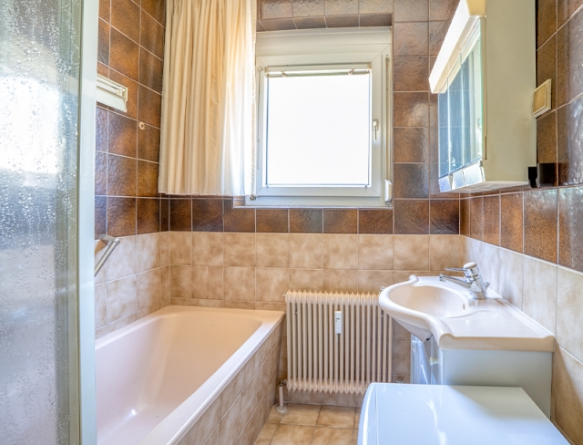 - The perfect layout with stunning views! The central hallway leads to a cosy living area, which includes a dining nook and lounge space. The adjoining west-facing balcony is the perfect spot to enjoy the evening sun, offering lovely views of the leafy surroundings and the historic Josef-Rehrl School. The separate kitchen, with space for a breakfast table, and the bathroom, featuring a bathtub, washing machine connection, and window, would benefit from some refurbishment. Two snug bedrooms and a separate WC complete the attractive layout.