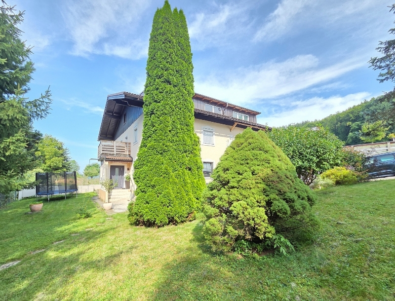 - Unique, generously proportioned 5-room apartment with approx. 130 m² of living space, plus a 438 m² private garden with a terrace, an XL basement storage room, one carport space, and additional outdoor parking. Quietly located in Nußdorf am Haunsberg (Pinswag).