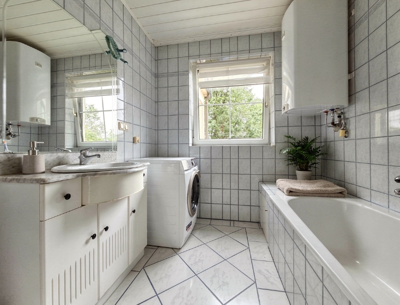 - This spacious apartment impresses with its generous layout and wealth of potential. The living room with a wood-burning stove forms the heart of the home, while four additional rooms offer flexible use. There are two bathrooms – each with a bathtub and shower, one also with a WC – a high-quality kitchen renovated in 2017, a utility/storage room, and a separate guest WC. A standout feature is the large, private, beautifully landscaped garden with a garden shed. The building comprises just three apartments.