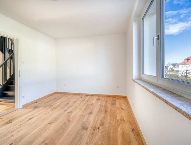 - Upstairs, there are two spacious bedrooms, along with a brand-new bathroom with a bathtub and a separate WC. The converted loft provides two generously sized rooms for flexible use, one of which includes a large gallery space under the eaves.