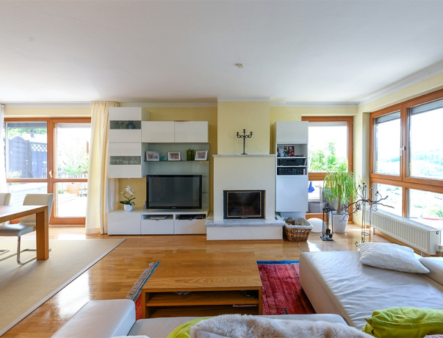 - Magnificent 5-room end-terrace house (freehold) with approx. 126.90 m² of usable floor space across 3 levels, featuring an approx. 37 m² panoramic terrace with electric sunshade and a small garden ideal for herbs or colourful flowers.