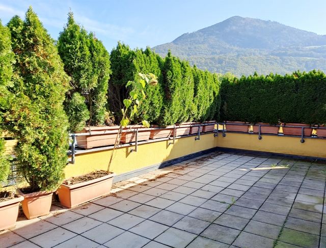 - Partially furnished 4-room penthouse with 106 m² of living space, a 9 m² balcony, and a 45 m² terrace on the 2nd (top) floor. Includes a 27 m² basement storage unit and two parking spaces. Only 5 apartments in the building!