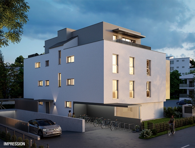 - Die Wohnungen sind barrierefrei über einen Lift direkt vom Haupteingang oder von der Tiefgarage aus zugänglich. HWB 25, fGEE 0,55