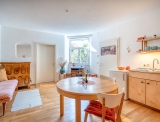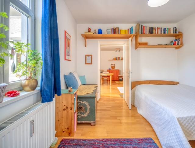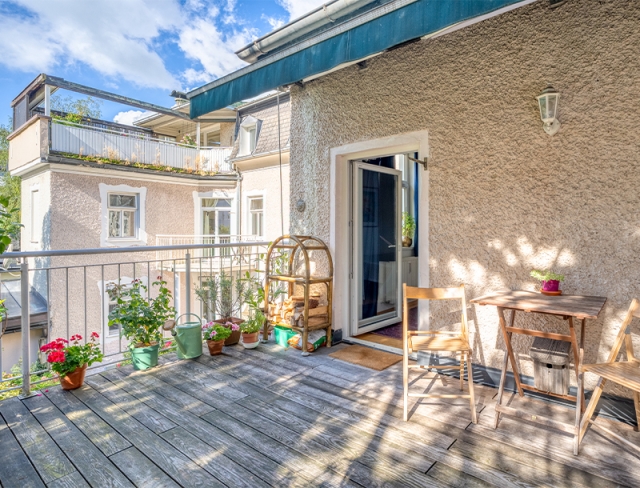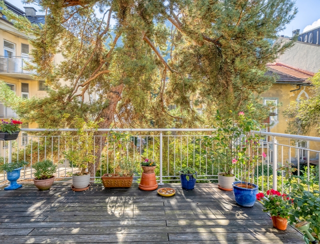 - So charmant! Von der Diele mit ausreichend Platz für die Garderobe geht es in den Vorraum in dem derzeit ein kleiner Arbeitsbereich am Fenster eingerichtet ist. An das gepflegte Wannenbad mit WM-Anschluss schließt das separate WC direkt an. Der Wohnbereich mit integrierter Holzküche und Platz für einen Esstisch strahlt Geborgenheit aus, ein schöner Kachelofen sorgt für wohlige Wärme. Vom Schlafzimmer aus öffnet sich die großzügige Sonnenterrasse mit Blick in den Innenhof und auf den Kapuzinerberg, bereit für Blumen, den Liegestuhl oder ein Fest mit Freunden. Nur fünf Parteien im Haus!