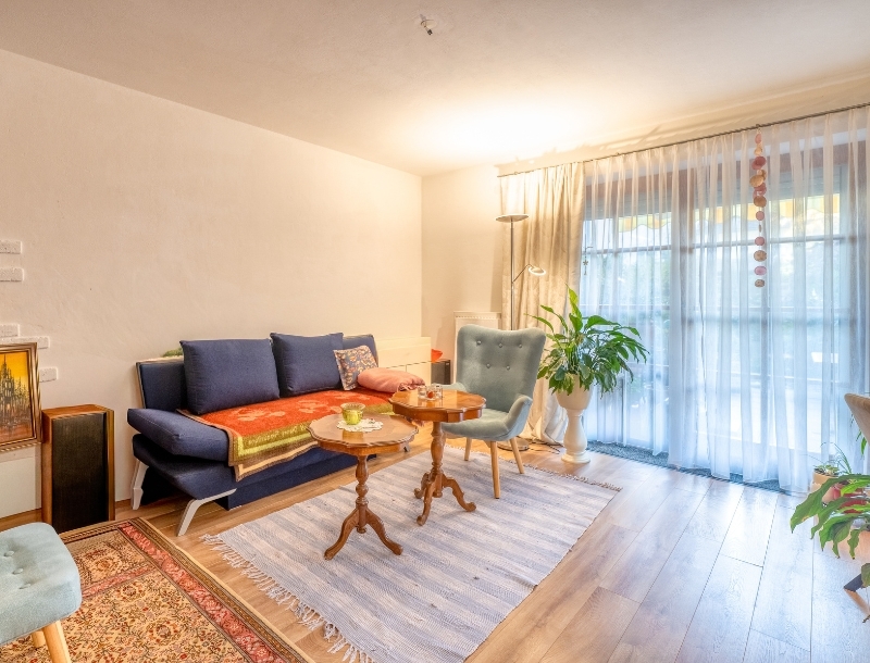 - Kuschelige, feine Gartenwohnung mit ca. 50 m² Wnfl. zzgl. ca. 13,5 m² Terrasse und ca. 31 m² lauschigem Garten in West-Ausrichtung, Kellerabteil sowie einem Freistell- und einem Carport-Parkplatz.