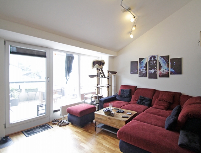 - Freies und luftiges Wohnen! Die charmante Wohnung besticht mit tollem Grundriss und großteils besonderer, sehr schöner Raumhöhe. In das gemütliche Wohnzimmer fällt durch die große Glasfront viel Licht, die Sonne lässt es sich auch auf der blickgeschützten Terrasse samt herlichem Untersbergpanorama genießen. Gleich anschließend befindet sich die moderne Küche mit großem Fenster und ausreichend Platz für einen Esstisch. Zwei großzügige und ruhig gelegene Schlafzimmer, eines mit Dachflächenfenster sowie das in Weiß gehaltene Badezimmer mit Wanne, Dusche, Fenster, WC und Waschmaschinen-Anschluss sowie eine Garderobe komplettieren das durchdachte Raumkonzept.