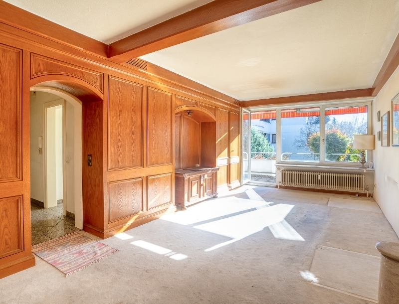- Premiumlage! Großzügige, leicht adaptierungsbedürftige 3-Zimmer-Whg. mit ca. 77,29 m² Wohnfläche zzgl. XL-Terrasse mit ca. 22 m² in Süd-Ausrichtung, im 1. OG, großer Kellerraum mit ca. 15 m². Allgemeine Parkplätze vorhanden, ein TG-Platz kann optional um EUR 22.000 erworben werden.