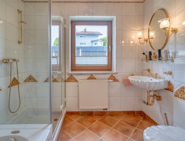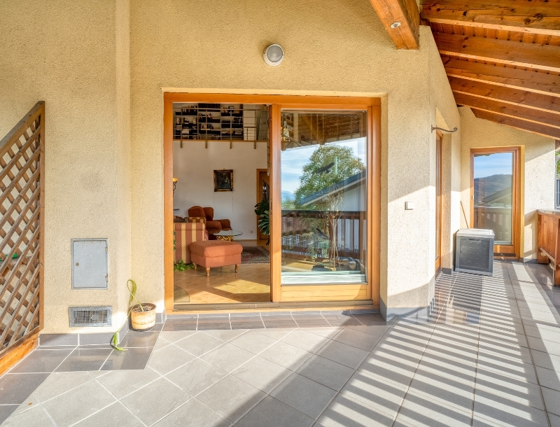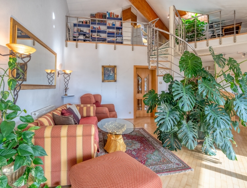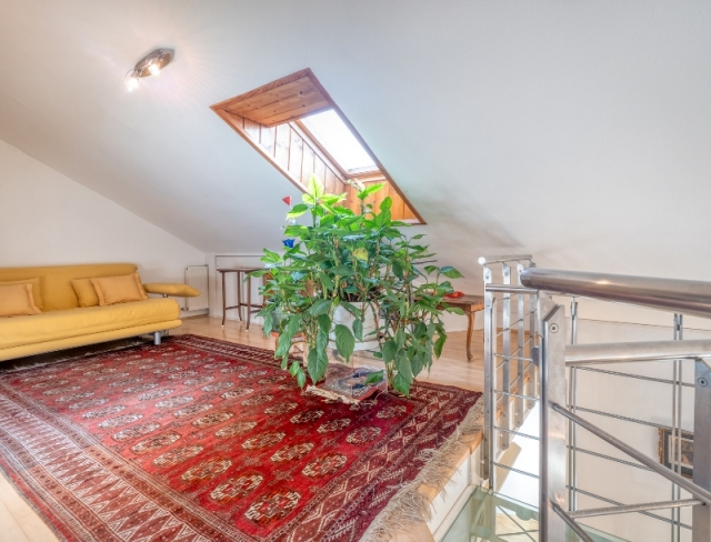- Herzstück und absoluter Wohlfühlbereich der hellen Wohnung ist das liebevoll gestaltete Wohnzimmer mit dem schönen Kaminofen und Zugang auf die großzügige Terrasse mit einem Weitblick ins Grüne und bis in die Bergwelt. Die schicke Tischlerküche mit hochwertigen Geräten und Frühstücksbar sowie der Esstisch sind harmonisch integriert. Die maßgefertigte Wendeltreppe führt hinauf in den gemütlichen Lesebereich auf der Empore. Vom Elternschlafzimmer fällt der Blick in die herrliche Umgebung, der Kaffee wärmt auf dem Balkon. Als besonderes Highlight entpuppt sich das Wannenbad mit Dusche, WC, Fenster und Armaturen in 24 Karat Gold. Ein zweites Schlaf- oder Kinderzimmer ergänzt das Raumangebot: Im UG: Sauna, Solarium, Dusche, WC und WM-Anschluss sowie ein Lagerraum.
