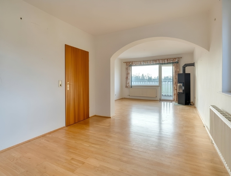 - Einmalige Chance für alle, die freies, ruhiges und naturnahes Wohnen schätzen! Vom Eingangsbereich geht es ins Badezimmer mit Wanne, WC und Fenster, das sich über eine sanfte Verschönerung freut. Die Küche mit Essplatz befindet sich derzeit separat, könnte aber zum Wohnbereich hin geöffnet werden. Hier befindet sich ein schöner Kaminofen sowie der Zugang auf den Aussichtsbalkon, der eine einmalige Premiumaussicht bietet. Auch von beiden geräumigen Schlafzimmern fällt der Blick ins Samer Mösl. Ein eigener Garten mit Hütte steht für entspannte Stunden mit Familie und Freunden bereit.