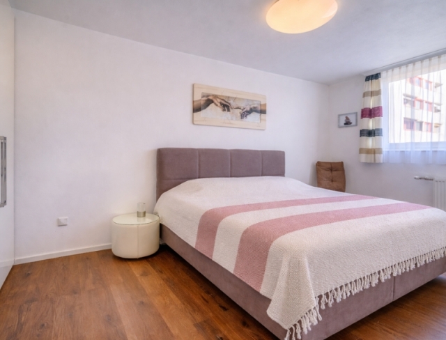 - Perfekt für die kleine Familie! Vom geräumigen Vorraum samt Abstellraum mit WM-Anschluss und separatem WC lassen sich alle Zimmer der Wohnung erreichen. Ein Lieblingsplatz wird sicher das Wohnzimmer, das sich zur sonnigen Loggia mit einem herrlichen Blick in die Bergwelt öffnet. Die anschließende, etwas vom Wohnbereich separierte DAN-Küche samt Essplatz präsentiert sich top in Schuss. Das ostseitige Elternschlafzimmer sowie das kuschelige Kinderzimmer (bzw.Homeoffice) verwöhnen mit Morgensonne, das moderne, in Naturtönen gehaltene Duschbad mit einer großen Walk-In-Dusche.