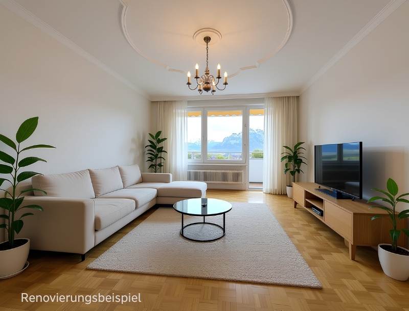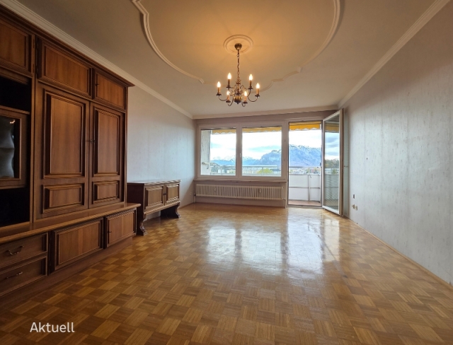 - Großzügiger Grundriss mit vielen Möglichkeiten: Das gemütliche Wohnzimmer begeistert mit einer großen Fensterfront und Zugang zur Süd-Loggia, die eine herrliche Fernsicht bis in die Altstadt inklusive Festung, den Untersberg und bis in die bayrische Bergwelt bietet. Drei weitere, geräumige Zimmer sind individuell als Schlaf- oder Kinderzimmer nutzbar. Die Küche mit Platz für einen Esstisch freut sich auf eine Neugestaltung, gefrühstückt wird auf dem Balkon mit Blick auf Maria Plain und den Heuberg. Das Retro-Bad erfrischt mit einer Wanne und WM-Anschluss, ein separates WC sowie ein Abstellraum machen das attraktive Raumangebot komplett. Für die Familie oder auch eine WG bestens geeignet!