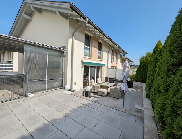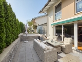 - Attraktives und neuwertiges Eckreihenhaus mit ca. 95 m² Wohnnutzfläche, zzgl. Hobbyraum im UG mit ca. 20 m², XL-Loungeterrasse mit ca. 40 m² auf 154 m² Grund, Garten-Abstellbox, Carport- und ein Stellplatz.