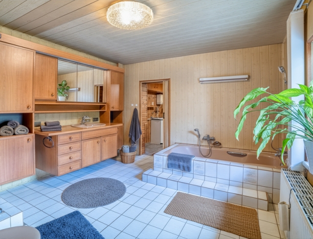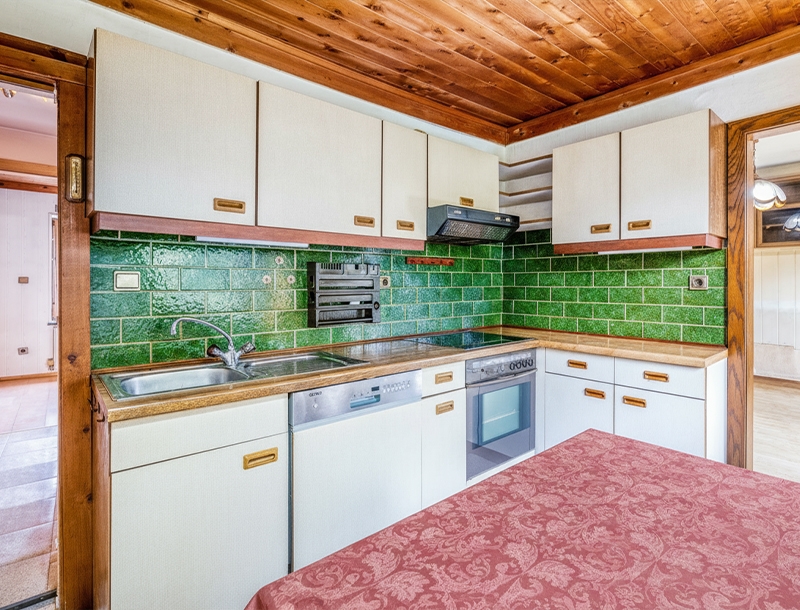 - Baujahr ca. 1950, spätere Erweiterungen, Elektroheizung, Wirtschaftsraum und Küche mit direktem Gartenzugang, großes Holzlager, Regenwassertank im Garten.