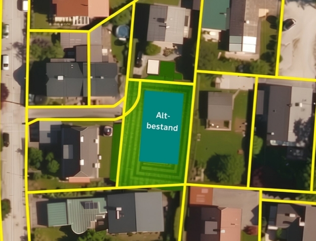 Bodenplatte/Anschlüsse ca. € 100.000,- exklusive Abriss Altbestand - Bei Neubau GFZ 0,36 – 0,5 und 2 Vollgeschoße möglich. EA.i.A