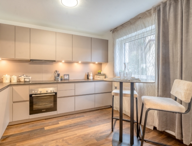 Sonneninsel in der Stadt! An den Eingangsbereich mit ausreichend Platz für die Garderobe schließt das elegante Badezimmer mit Walk-In-Dusche, Doppelwaschtisch und WM-Anschluss sowie das separate WC an. Weiter geht es in den großzügigen Wohnbereich mit XL-Loungezone und in die offen ange- schlossene Wohnküche, in der es auch Platz für den Esstisch gibt. Der über das Eck geführte Süd-West Balkon garantiert für ein Maximum an Sonnenstunden. - Das geräumige Elternschlafzimmer und ein zweites, individuell nutzbares Zimmer für Kids, Gäste oder das Homeoffice ergänzen das Raumangebot.