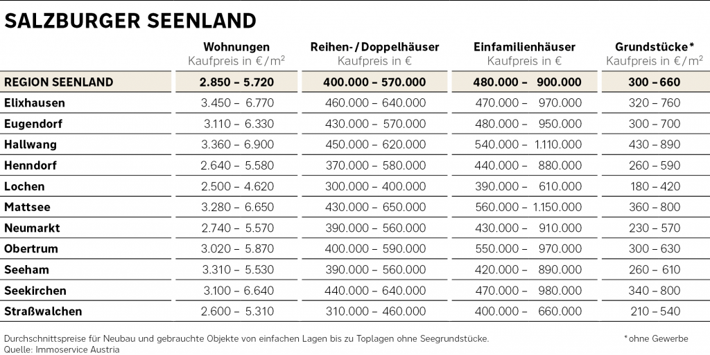 Immobilienpreise 2025 für die Region Salzburger Seenland