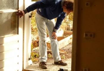 Eine weitere Studentin arbeitet mit Schweissgerät und Bohrer im Haus. Es wird spannend!